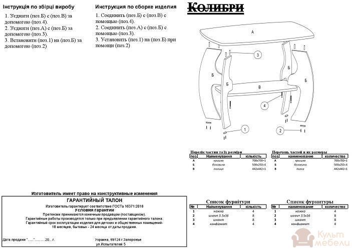 Журнальний стіл Пехотин Колібрі