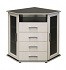 Найбільш великий колірний асортимент належить третій групі. Такі білі комоди також збираються з ДСП, а фасад створюється МДФ. Основними відтінками можуть бути: молочний дуб, венге світлий, світле вибілене дерево, карельська і майнау береза. Тут чисто білий колір трохи розбавляється розлученнями. Зустрічаються відтінки холодного сірого і бежевого.