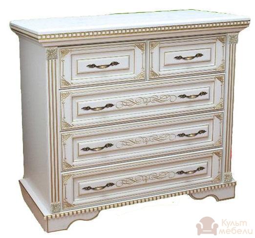До комода Альфа Гармония патина поставляється з фабрики, в зібраному вигляді. Кольорові рішення (Білий - патина золото; вільха - патина чорна; яблуня - патина чорна;).