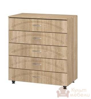 Комод Пехотин Гера К - 5 з ламінованого ДСП і МДФ "Swisspan", товщиною - 16 мм. При кромкуванні, використовується ПВХ, товщиною - 0,5 мм і 2 мм. Застосовується якісна фурнітура і роликові направляючі для висувних ящиків.
