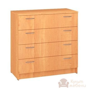 Комод Пехотин К - 4 ДСП з якісного ламінованого ДСП "Swisspan", товщиною - 16 мм. Для кромки застосовується ПВХ, товщиною - 0,5 мм. Висувні ящики комода на роликових направляючих.