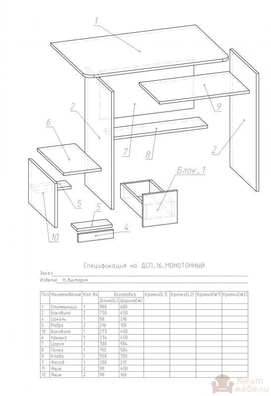 Недорогий комп'ютерний стіл Ніка Вікторія з ламінованого ДСП "Swisspan", товщиною - 16 мм, що стосується кромки, то для стільниці використовується ПВХ, товщиною - 2 мм., для корпусу ПВХ, товщиною - 0,5 мм.