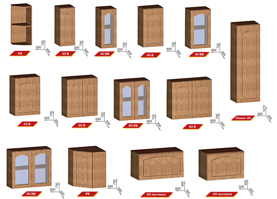 Варіант комплектації кухні на 2 метри (ціна вказана у таблиці ниже): верх (40В, 80В, 80ВВ), низ (40Н-Я, 80НМ, 80Н).