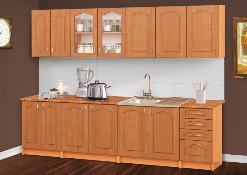 На головному фото представлена кухня Юлія МДФ розміром 2,6 метра, складається з таких модулів: верх (40В, 80В, 80ВВ, 60В), низ (40Н-Я, 80НМ, 80Н, 60Н), також у вартість кухні входить цільна стільниця довжиною 2,6 метра!