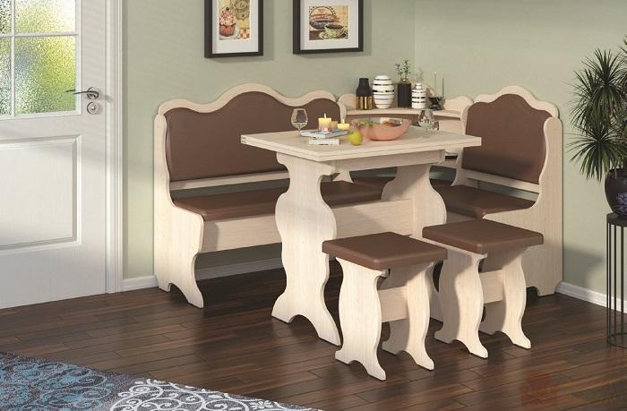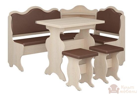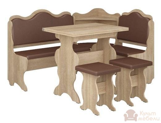 Для Кухонного куточка Пехотин Корнет на меблевій фабриці використовують якісну фурнітуру. Можливі варіанти кольорових рішень корпусу з ДСП і оббивки з тканини, кожзама, представлені нижче під фото товару.