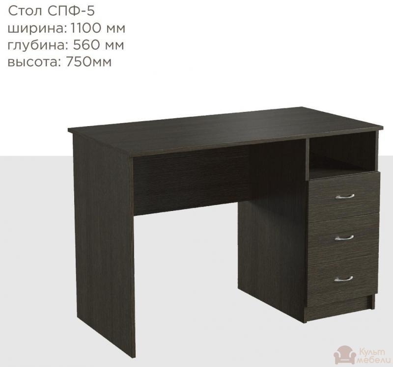 Письмовий стіл Фенікс СПФ - 5 ховає під своєю стільницею нішу для документів і три висувних ящика на роликових направляючих в яких Ви без особливих турбот зможете знайти місце для усіх своїх речей.
